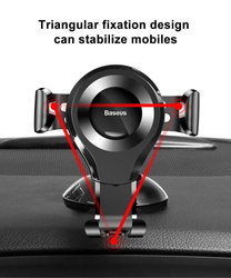 Grawitacyjna technologia, zaimplementowana w uchwycie polega na wykorzystaniu siły grawitacyjnej. Kiedy umiejscowimy w uchwycie nasze urządzenie, siła nacisku na dolny panel sprawi że ramiona uchwytu zacisną się na naszym urządzeniu. W ten sposób posiadamy doskonale zabezpieczone przed wypadnięciem urządzenia w uchwycie.