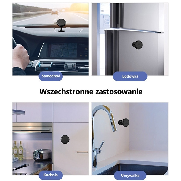 - Magnetyczne mocowanie, 4 silne magnesy gwarantują stabilność i bezpieczeństwo telefonu.