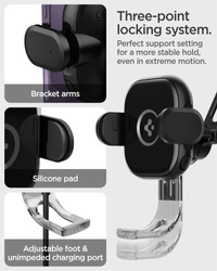 Spigen UTS35W to także funkcjonalne rozwiązanie dla posiadaczy smartfonów z technologią bezprzewodowego ładowania, którzy często podróżują samochodem.