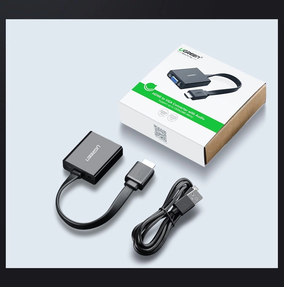 Ugreen HD Converter to przejściówka ze złącza HDMI na VGA z dodatkowymi złączami micro USB (do zasilania) i audio AUX 3.5mm mini jack umożliwiająca podłączenie nowego laptopa, konsoli czy odtwarzacza multimedialnego do starszego telewizora, monitora lub projektora. Doskonały gadżet pozwalający na korzystanie z najnowszego mobilnego sprzętu na starszej daty odbiornikach. Nie musisz kupować najświeższego modelu telewizora, aby przesłać do niego wysokiej jakości sygnał ze swojego notebooka.