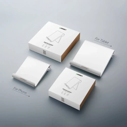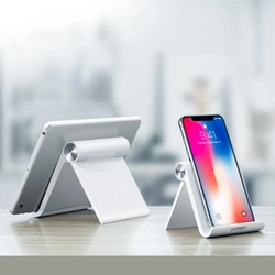 Uniwersalna, składana podstawka na telefon lub tablet. Poprawia komfort korzystania z urządzeń mobilnych, pozwala dopasować położenie telefonu do swoich potrzeb. Stojak jest wykonany z wysokiej jakości materiałów, które łączą w sobie funkcjonalność i elegancki wygląd.