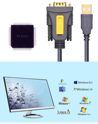 Kabel z szeregowym portem RS-232, który można podłączyć do wtyczki USB w komputerze. Dzięki temu za pomocą komputera będziesz w stanie połączyć się z urządzeniami takimi jak: