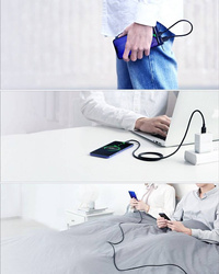 Niezwykle wytrzymały, kabel USB ze złączem USB Typ C. Wykonany z mocnego tworzywa przewód, który dzięki USB 2.0 i obsłudze natężenia w wysokości 3 A zapewnia szybkie ładowanie oraz przesyłanie danych.