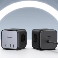 Ugreen kostka listwa zasilająca 65W USB / USB C + 3x gniazdo AC czarna (CD268)
