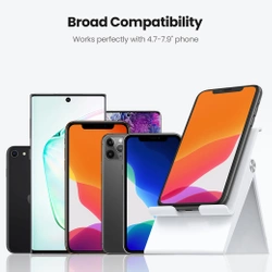 Podstawka rozkłada się maksymalnie pod kątem 100°. Stojak utrzyma telefon, a nawet mini tablet o przekątnej ekranu od 4.7 do 7.9 cala. Produkt przyda się podczas oglądania filmów, grania w gry, rysowania lub rozmowy przez telefon.