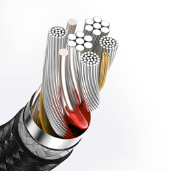 Kabel wzmocniono warstwą materiału TPE i nylonu zwiększając przy tym odporność na uszkodzenia mechaniczne.