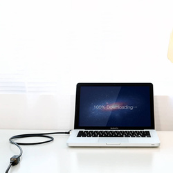 Kabel sieciowy marki Ugreen pozwala na przedłużenie zwyczajnego kabla Ethernet Cat 6. Jest bardzo praktycznym rozwiązaniem w przypadku kiedy gniazdo internetowe znajduje się za daleko od komputera, a położenie nowego, dłuższego kabla jest utrudnione.