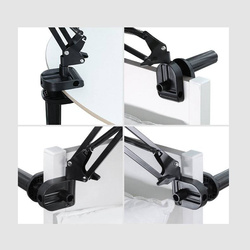 Instalacja uchwytu możliwa jest bez użycia narzędzi. Trwa tylko 30 sekund, nie wymaga wiercenia ani zaciskania za pomocą specjalistycznych urządzeń. Nie ingeruje w strukturę mebli, dlatego z powodzeniem umieścisz uchwyt na krześle, pulpicie szafki nocne, zagłówku itp.