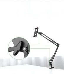 Po umieszczeniu telefonu czy tabletu w uchwycie możesz swobodnie regulować kąt, pod jakim będziesz widział ekran. Urządzenie pozwala na 2-stopniową regulację w zakresie aż 360 stopni, dzięki czemu ustawienie odpowiedniej odległości od użytkownika będzie bardzo proste. Długość ramienia ze stopu aluminium wynosi 65 cm, co daje dużo opcji regulacji.