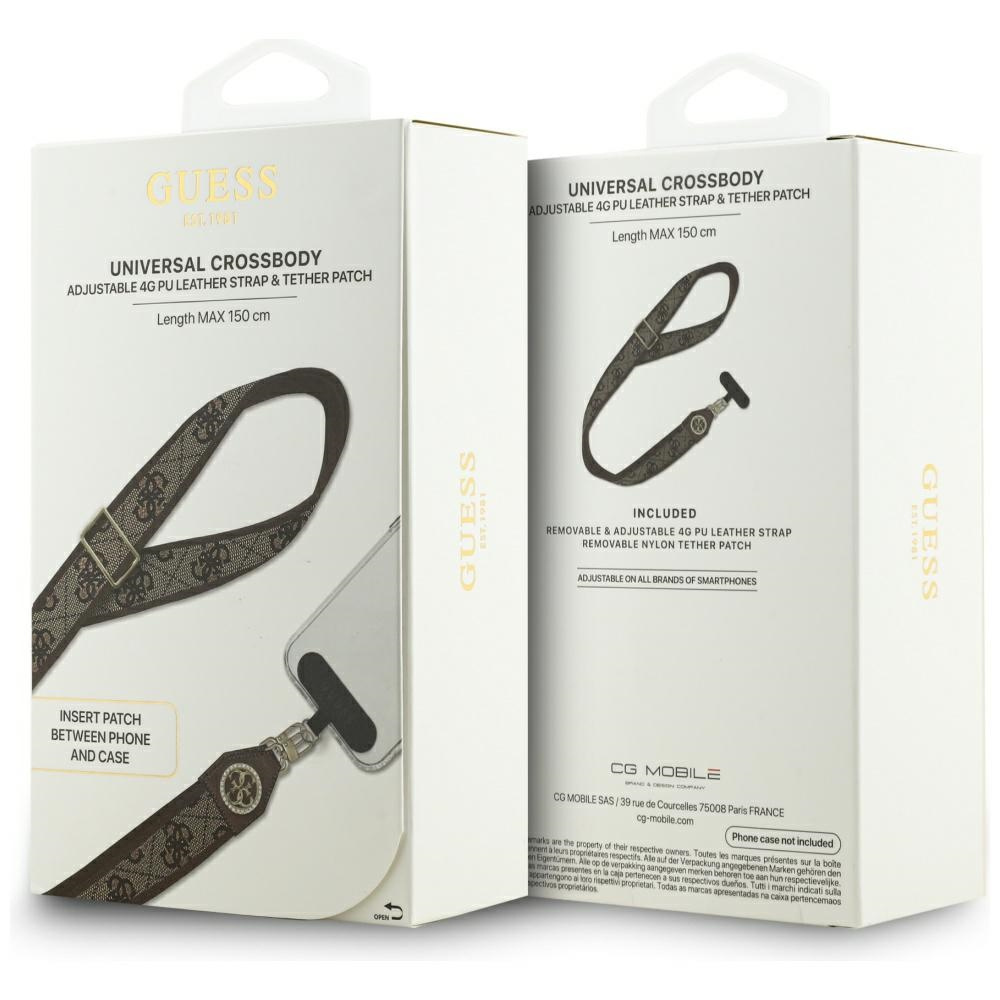 • Uniwersalna smycz Guess Universal CBDY   4G Tether Patch Strass Metal Logo brązowy