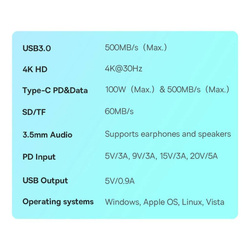 - USB-C (PD + transmisja danych) - 100W / 500MB/s (max)