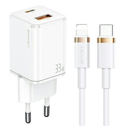 USAMS ładowarka sieciowa T43 33W + kabel U63 USB-C na Lightning.