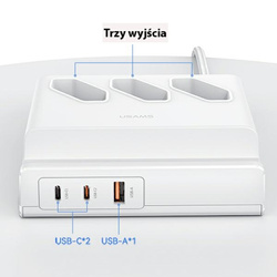 USAMS Listwa zasilająca 65W Super Si Fast Charging USB Extension Socket EU biały/white CC160TC01 (US-CC160)