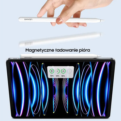 Urządzenie zesprarowane z tabletem iPad ładuje się bezprzewodowo poprzed magnetyczne przyłożenie go do tabletu. Stan baterii można bardzo łatwo monitorować na ekranie iPada- wystarczy zerknąć na widżet baterii. Wyświetlany poziom baterii pokazuje stan baterii w czasie rzeczywistym.