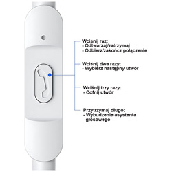 Wbudowany pilot z mikrofonem ułatwia prowadzenie rozmów oraz sterowanie bez potrzeby korzystania z telefonu. Słuchawki zostały wyposażone w miedzianą membranę gwarantującą bardzo realistyczną jakość dźwięku. Dodatkowa redukcja szumów sprawia, iż możemy cieszyć się czystym dźwiękiem.