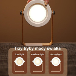Inspirowana tradycyjnymi lampami, łączy ze sobą oświetlenie, dekoracje i inne funkcje. Lampa wspiera rotacje o 360 stopni, co umożliwia bezproblemowe dostosowanie kąta padania światła do naszych potrzeb. Drewniany uchwyt pozwala na łatwe przenoszenie oraz zawieszenie lampy w odpowiednim miejscu. Bateria o pojemności 1200 mAh pozwala na niemal 3 godziny bezstannego użytku. Ciepłe nocne światło nie drażni oczu i dba o nasze zdrowie.
