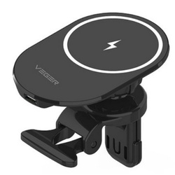 Uchwyt samochodowy Veger Y38 z ładowaniem bezprzewodowym. Montowany do kratki. Pozwala na bezpieczne korzystanie ze smartfona w trakcie jazdy.