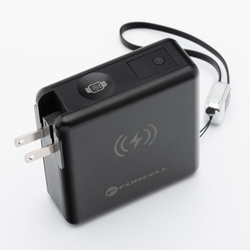 Obsługa standardów Power Delivery i Quick Charge 3.0 gwarantuje szybkie ładowanie kompatybilnych sprzętów. Wbudowany ekran LCD umożliwia kontrolę poziomu naładowania powerbanku, a dwa dołączone kable – USB-C do USB-C i USB-C do Lightning – ułatwiają korzystanie z dostępnych portów, zwłaszcza że każdy z nich można wpiąć do zintegrowanej zawieszki. Natomiast na wysuwanej podpórce łatwo oprzeć smartfon w trakcie ładowania bezprzewodowego.