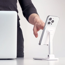 Zaledwie 155 gramów – tyle waży stojak na telefon na biurko Wozinsky WFDPS-W1. Dzięki temu, że składa się na płasko, zmieści się w torebce, walizce czy plecaku. Możesz więc zabrać ją w podróż służbową lub prywatną i mieć zawsze przy sobie. Co ważne, podstawka na telefon ma ergonomiczną konstrukcję, która pozwala na jednoczesne ładowanie telefonu.