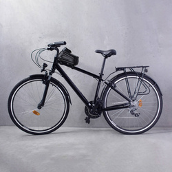 - Zamocujesz ją na wielu rodzajach ram rowerowych. Potrójne paski z rzepami trzymają torbę stabilnie