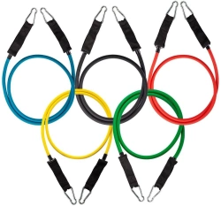 Chcesz wykonać profesjonalny trening siłowy w domu? Wykorzystaj zestaw pięciu ekspanderów - treningowych gum oporowych, które pozwolą Ci przeprowadzić ćwiczenia fizyczne w domowych warunkach bez ograniczeń. Specjalna kotwica umożliwi zamontowanie gum na drzwiach, a pasy na kostki usprawnią trening dolnych partii mięśni. Ekspandery zostały wykonane z naturalnej gumy.