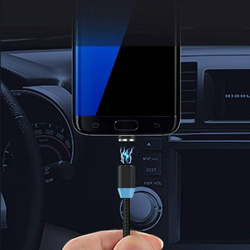 Ten kabel jest tak prosty w obsłudze, że możesz podłączyć go do telefonu nawet podczas jazdy samochodem. Sztywny kabel z magnetyczną końcówką precyzyjnie dopasuje się do umieszczonego w wejściu smartfona adaptera.