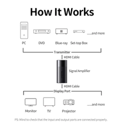 - 4K@30Hz ─ 20M 24AWG kabel HDMI dla nadajnika i 10M 28AWG kabel HDMI dla odbiornika