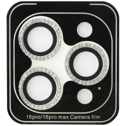 • Zestaw 2w1 Guess BP Rhinestone szkło na   ekran i obiektyw aparatu do iPhone 16 Pro Max złoty