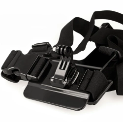 - Szelki na klatkę piersiową typu Chest Mount pozwalają na zamocowanie kamery na wysokości naszej klatki piersiowej. Mocny materiał zapewnia bezpieczne położenie kamery, bez obaw o ewentualne uszkodzenie urządzenia. Regulowane klamry oraz antypoślizgowe, elastyczne i miękkie paski pozwalają na mocowanie szelek zarówno na gołym ciele, jak i na grubej bluzie czy kurtce. Przeznaczone są dla kobiet i mężczyzn o różnej budowie ciała.