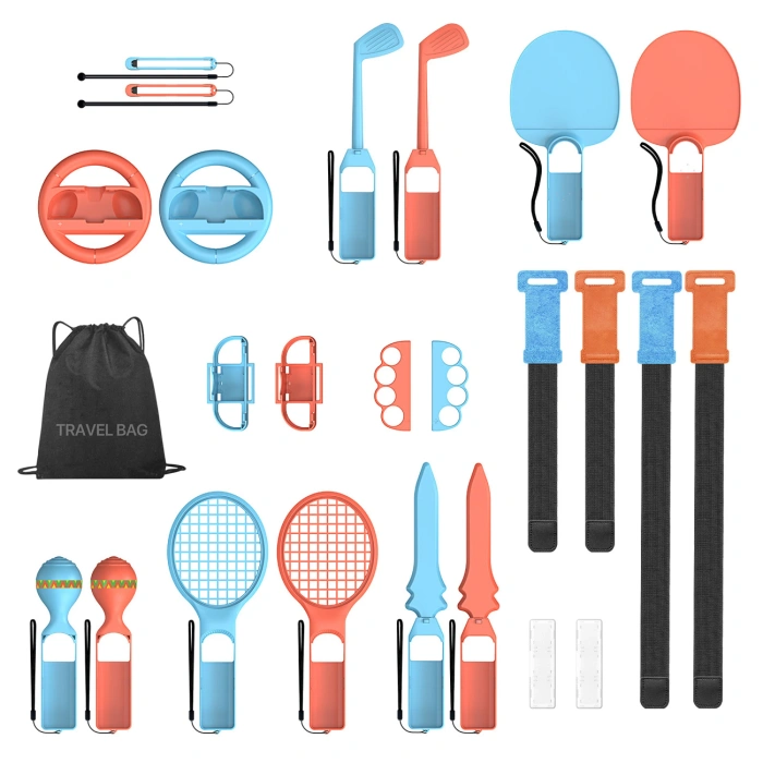 Dux Ducis 25w1 to kompletny zestaw akcesoriów do Nintendo Switch 2, który przeniesie Twoje sportowe i wyścigowe rozgrywki na nowy poziom. W zestawie znajdziesz m.in. rakiety tenisowe, kierownice, kije golfowe, paski na nadgarstki i nogi oraz uchwyty Joy-Con, które wiernie odwzorowują ruchy i zwiększają realizm gry. Wszystkie elementy wykonano z trwałych materiałów, a regulowane paski antypoślizgowe zapewniają bezpieczną i komfortową zabawę. Ergonomiczne uchwyty i przezroczysty organizer na karty ułatwiają korzystanie i przechowywanie gier. Dołączona torba pozwala na wygodne przenoszenie całego zestawu. To akcesoria, które wprowadzą Cię w świat pełen intensywnej i realistycznej rozgrywki.
