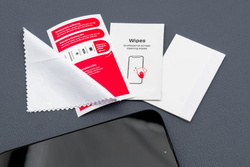 2. Naklejka do usuwania kurzu – delikatnie przyłóż ją na ekran, aby zebrać drobinki kurzu po czyszczeniu.